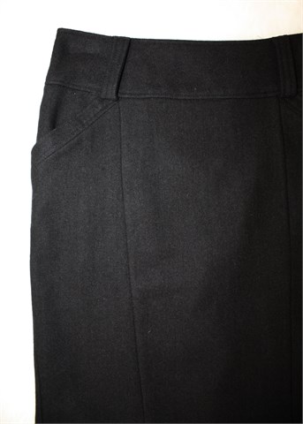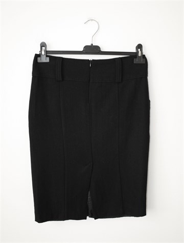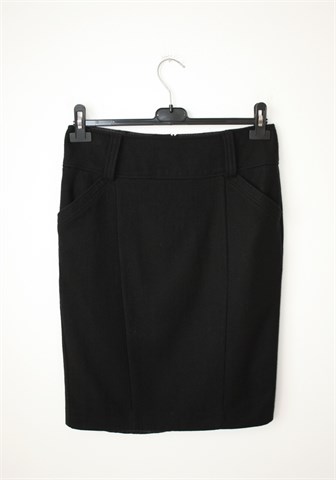 Dorothy Perkins zimska suknja crne boje. Prednji bočni džepovi, široka pasica za remen. Stražnji cif i gumbić. Stražnji rasporak, podstavljena. Mekan i mucast materijal, vrlo blago rastezljiv.