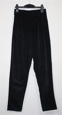 Dressbarn hlače-tajice od samta crne boje. Visoki struk (dublji model - vidjeti mjere), u struku gumica pa je širina prilagodljiva. Bočni cif, vrlo rastezljive. Hlače su u gornjem dijelu malo šire i nisu skroz uz noge, pri dnu skinny, pomalo retro model :)