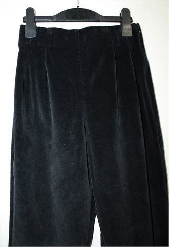 Dressbarn hlače-tajice od samta crne boje. Visoki struk (dublji model - vidjeti mjere), u struku gumica pa je širina prilagodljiva. Bočni cif, vrlo rastezljive. Hlače su u gornjem dijelu malo šire i nisu skroz uz noge, pri dnu skinny, pomalo retro model :)