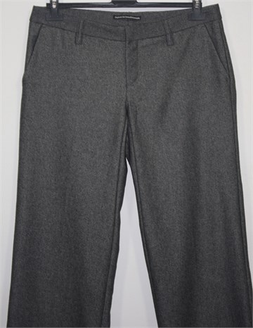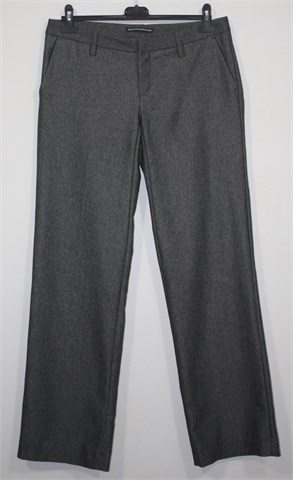 Drykorn (for beautiful people) hlače crno-bijele boje sa uzorkom sitne riblje kosti pa djeluju prošarano sive boje. Prednji cif i kopčanje, pasica za remen. Prednji bočni, stražnji džepovi sa gumbom. Lagan i topli vunasti štof.