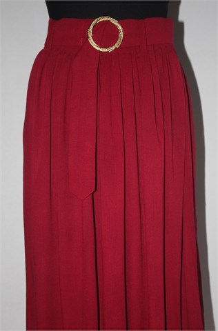 Duža suknja tamnije crvene boje. Gumica u struku, prema dolje se širi. Pasica sa remenom koji ima zlatnu kopču.
