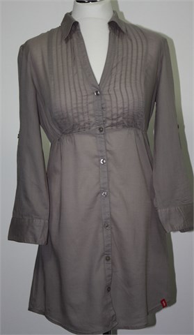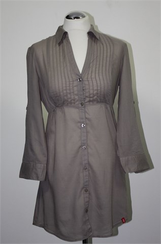 EDC by Esprit dugačka košulja/tunika sive boje, poludugi rukavi koji se mogu nositi i kao kraći (gumbić sa vanjske strane i vezica unutar rukava). Prednje kopčanje, ispod prsiju blago stegnuta gumicom. Tanji i lagan pamuk.
