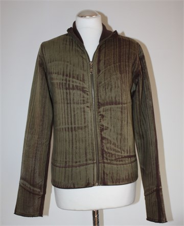 EDC by Esprit majica/jaknica sa prednjim kopčanjem na cif, maslinasto zeleno-smeđe boje. Mucasto podstavljena, deblja i topla. Blago rastezljiva.