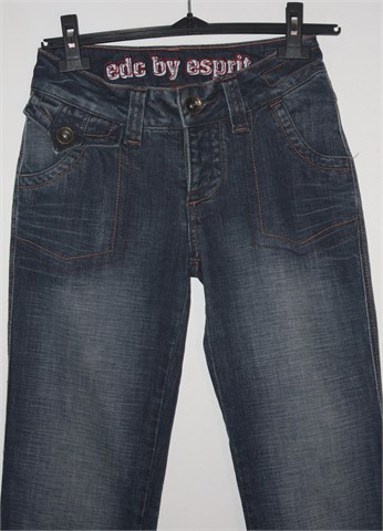 EDC by Esprit traper hlače. Prednji cif i kopčanje, pasica za remen. Prednji bočni, stražnji džepovi na preklop sa gumbom. Mjestimično ocufanog i ispranog izgleda (tvornički). Blago rastezljive.