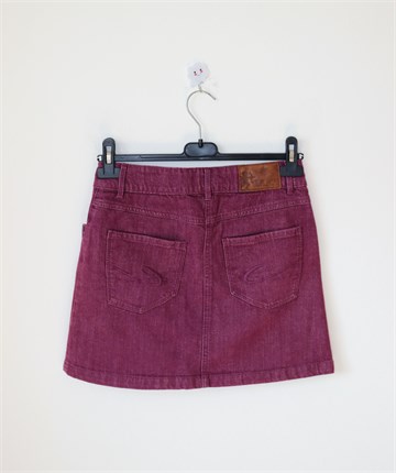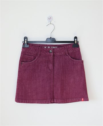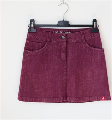 EDC by Esprit traper suknja bordo boje (rozo-ljubičasta). Prednji cif i kopčanje, pasica za remen. Prednji i stražnji džepovi, regulacija širine struka unutar pasice (bočne gumice se gumbićem). Blago rastezljiva, nešto duža sa stražnje strane (vidjeti mjere).