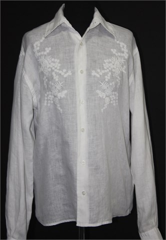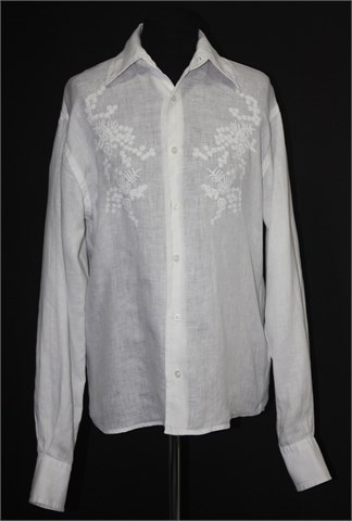 ESZ košulja od lana sa dugim rukavima, bijele boje sa prednjim končanim aplikacijama. Čvrst i lagan materijal.