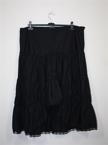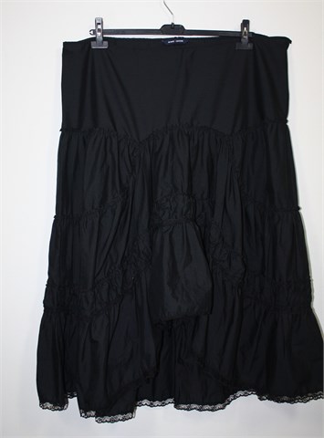 East Coast (Evans) suknja midi dužine, crne boje. Ukrasni prošivi sa naborima sa prednje i stražnje strane, mjestimično ukrašeni našivenim čipkastim trakicama. Suknja je nešto kraća sa prednje strane (vidjeti mjere). Lagana i prozračna. Bočni cif i gumbić.