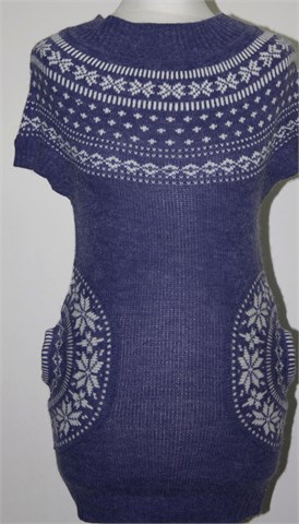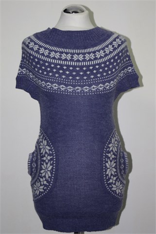 Edelweiss duža vesta/pletena tunika sa kratkim rukavima, plave boje sa detaljima u bijeloj boji (vidljivo na slikama). Bočni džepovi. Mekano i rastezljivo deblje pletivo, mucasto.
