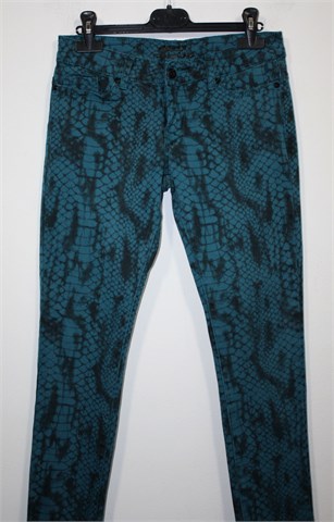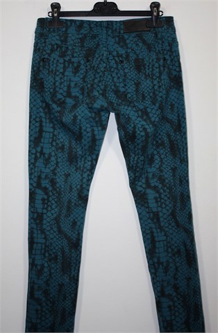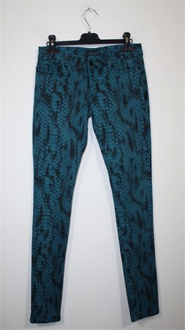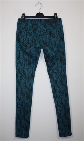 Eksept traper hlače zelene boje sa crnim printom (uzorak kao na slikama). Prednji cif i kopčanje, pasica za remen. Prednji i stražnji klasični džepovi. Oznaka modela - printed skinny. Rastezljive.