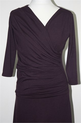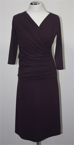 Cik - Cak modni atelije Lozovac (made in Hrvatska) haljina sa poludugim rukavima, zagasito ljubičaste boje (kao svjetlija boja patlidžana). Prednji fiksni preklop, bočni ušitci. Lagan i čvrst materijal, u gornjem prednjem dijelu haljina je podstavljena.