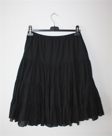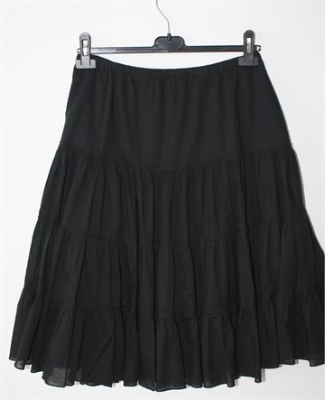 Ellos pamučna suknja crne boje, midi dužine. Gumica u struku (prilagodljiva širina - vidjeti mjere), podstavljena do cca pola dužine. Tanak i lagan pamuk.