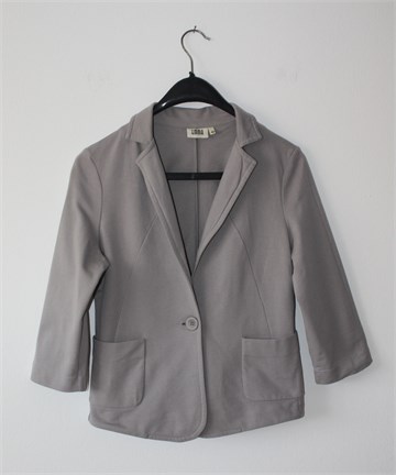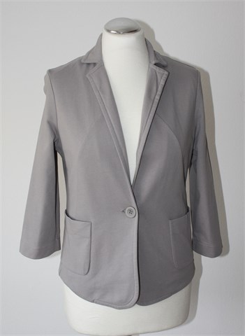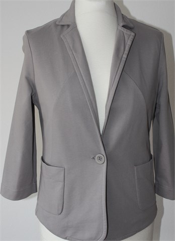Emma pamučni blazer sive boje sa poludugim rukavima. Prednji gumb, bočni džepovi. Deblji i blago rastezljiv pamuk.
