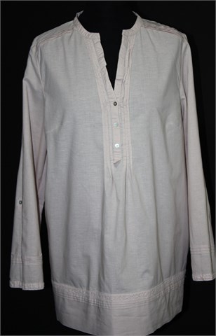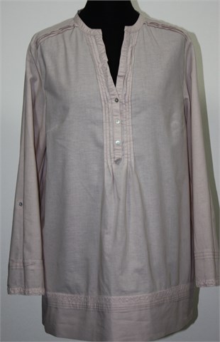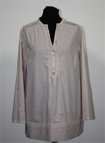 Esmara bluza sa dugim rukavima, svijetlo roze boje. Prednje kopčanje, mjestimični ukrasni prošivi i ukrasne heklane trakice. Lagan pamuk.