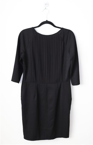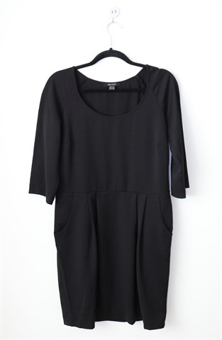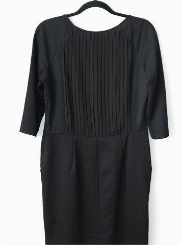 Esmara haljina sa poludugim rukavima, crne boje. Prednji bočni džepovi, cif na bočnom šavu. Plisirani materijal na leđima (vidljivo na slikama), vrlo blago rastezljiva.