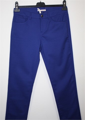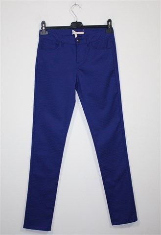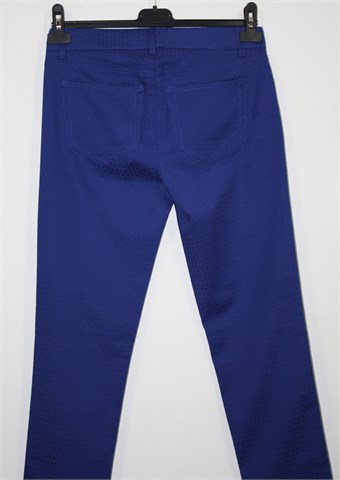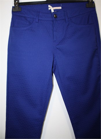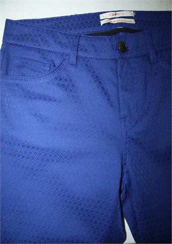 Esprit hlače kraljevsko plave boje sa sitnim, blago sjajnim uzorkom na materijalu (vidljivo na slikama). Prednji cif i kopčanje, pasica za remen. Prednji i stražnji džepovi. Blago rastezljive.