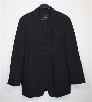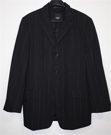 Esprit Collection sako crne boje sa diskretnim tankim prugama u svijetlo plavo-bež boji. Prednje kopčanje sa tri gumba, bočni džepovi na preklop i džepić na prsima (djelomično još uvijek zašiveni). Podstavljen, sa unutarnje strane 4 džepića (dva veća i dva manja). Blagi jastučići u ramenima, po 3 ukrasna gumba na kraju svakog rukava.