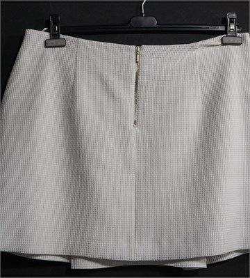 Esprit suknja bijele boje s uzorkom na materijalu (vidljivo na slikama), sa prednje strane dvije faldice. Bočni džepovi, stražnji cif i gumbić. Podstavljena. Blago rastezljiva.