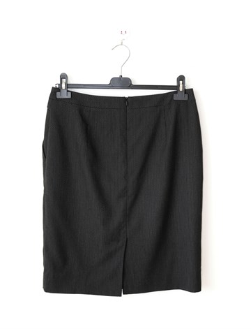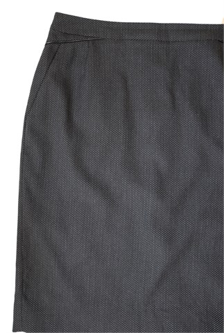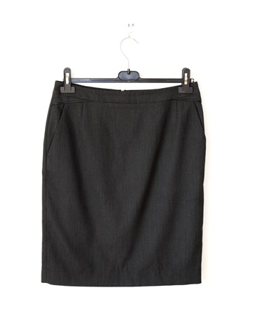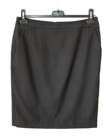 Esprit suknja crne boje sa sitnim sivim uzorkom (vidljivo na slikama). Prednji bočni džepovi, stražnji cif. Podstavljena, mali stražnji rasporak. Blago rastezljiva.