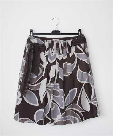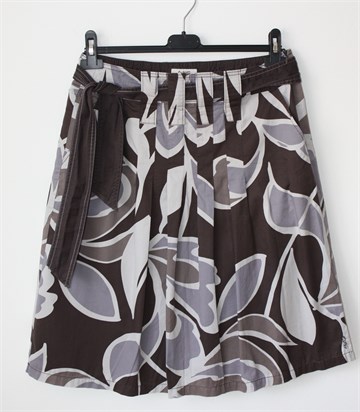 Esprit suknja u tri nijanse sivo-smeđe boje, falde sa prednje i stražnje strane. Bočni cif i gumbić, platneni remen u struku (može se skinuti). Podstavljena pamučnom podstavom.