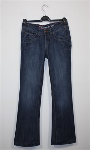 EDC by Esprit traper hlače, srednje plave boje mjestimično ispranog izgleda (used look). Prednji cif i kopčanje, pasica za remen. Prednji bočni, stražnji džepovi sa preklopom i gumbom. Skraćivane (nemaju originalan rub).