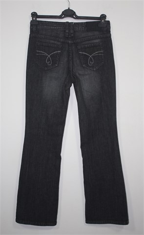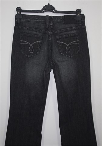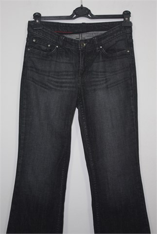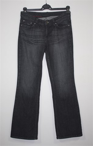 Esprit traper hlače, tamno sive boje mjestimično ispranog izgleda (used look). Prednji cif i kopčanje, pasica za remen. Prednji i stražnji džepovi (stražnji ukrašeni aplikacijama od srebrnog konca). Blago rastezljive.