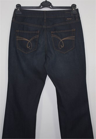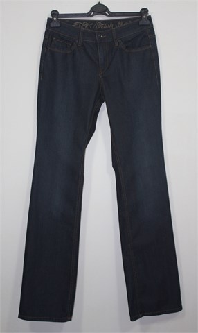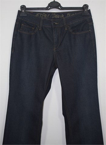 Esprit traper hlače, tamni traper mjestimično blago ispranog izgleda. Prednji cif i kopčanje, pasica za remen. Prednji i stražnji klasični džepovi (stražnji ukrašeni aplikacijama od konca). Blago rastezljive.