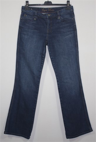 Esprit traper hlače, srednje plave boje (mjestimično ispranog izgleda - tvornički). Prednji cif i kopčanje, pasica za remen. Prednji i stražnji džepovi (stražnji na preklop - ukrasni prošivi). Vrlo blago rastezljive.