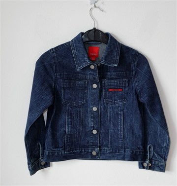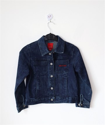Esprit traper jakna tamno plave boje. Prednje kopčanje sa drukerima, na prsima džepići. Malo rastezljiva.