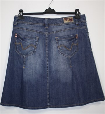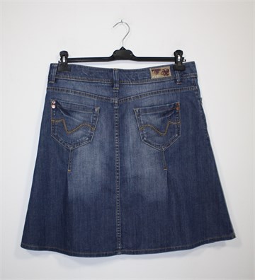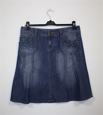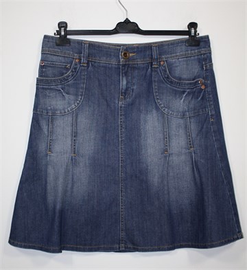 Esprit traper suknja plave boje, mjestimično ispranog izgleda (used look). Prednji cif i kopčanje, pasica za remen. Prednji bočni, stražnji klasični džepovi. Ušitci sa prednje i stražnje strane, blago rastezljiva.