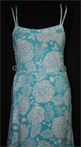 Essentials duža majica/tunika plave boje sa bijelim cvjetnim printom (uzorak kao na slikama). Tanke, duple naramenice, vezanje u struku. Mekan i rastezljiv materijal.