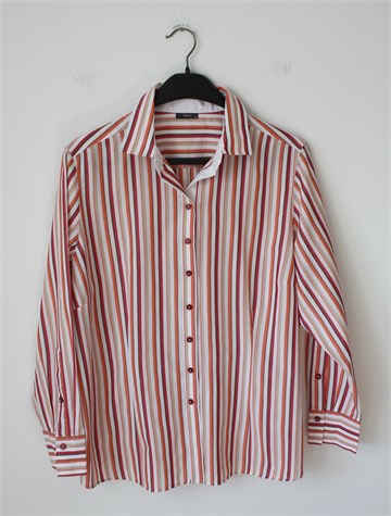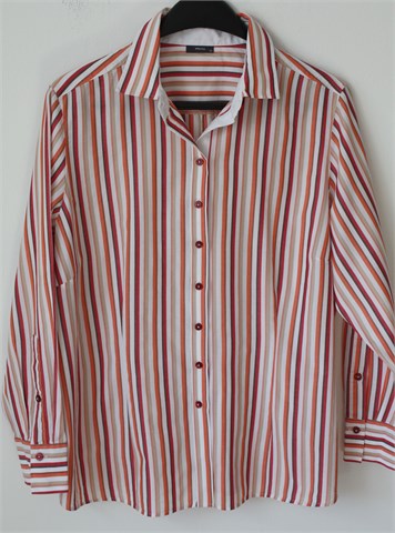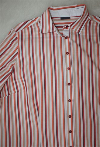 Eterna košulja sa dugim rukavima, bijele boje sa prugama (boje vidljive na slikama). Prednje kopčanje, blago strukirana. Nije rastezljiva.