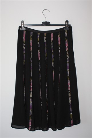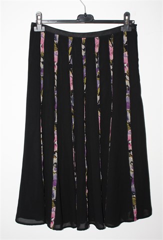 Exclusively Harry duga suknja crne boje sa našivenim trakama (trake su šarene, sa cvjetnim printom). Bočni cif i kopčica, podstavljena.