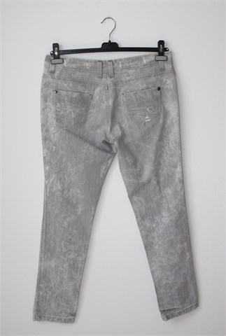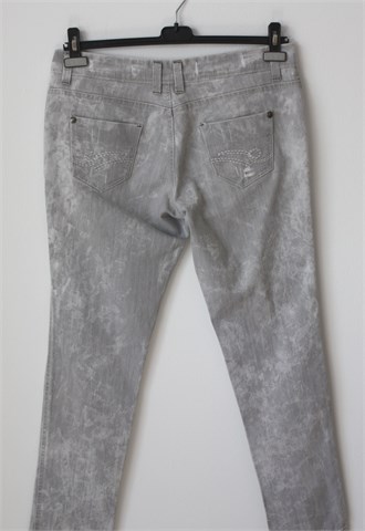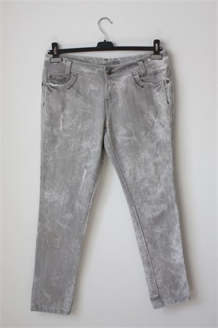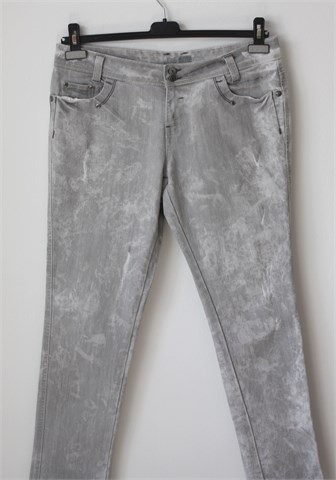 F&F Blue traper hlače prošarano svijetlo sive boje. Prednji cif i kopčanje, pasica za remen. Prednji i stražnji džepovi. Mjestimično ispranog i ocufanog izgleda (tvornički used look). Blago rastezljive.