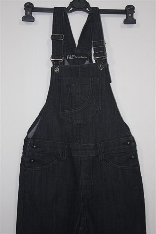 F&F (Forever Fashion) traper hlačice sa tregerima, tamno sive boje. Prednji i stražnji džepovi, džepovi na prsima. Bočno kopčanje, pasica za remen. Rastezljivi traper.