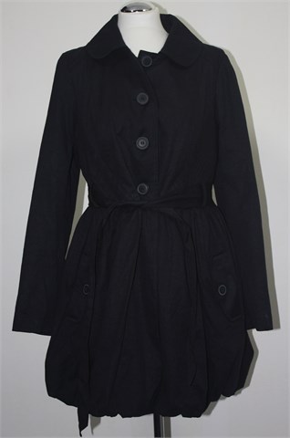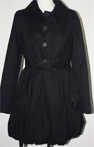 F&F baloner/jakna crne boje. Prednje kopčanje, ukrasne falde sa prednje strane. Vezanje u struku, donji dio balon kroja sa bočnim džepovima. Materijal je vrlo blago sjajan.