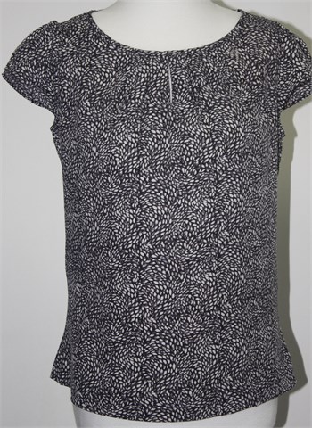 F&F košuljica/bluza sa kratkim rukavima, lijepi prošarani uzorak na tkanini. Materijal je jako lagan i tanak, svilenkast na dodir. Na prsima ušitci i mali otvor.