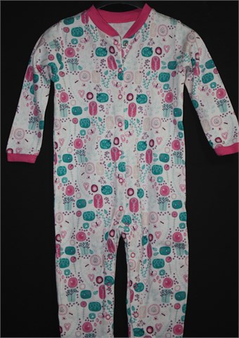 F&F body sa dugim rukavima, bijele boje sa šarenim printom. Kopčanje na drukere sa prednje strane i sa obje unutrašnje strane nogavica. Mekan i blago rastezljiv pamuk.
