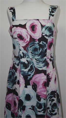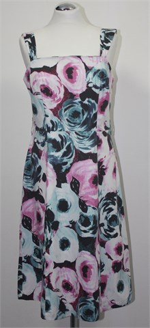 F&F haljina bez rukava, bijele boje sa šarenim cvjetnim printom. Stražnji cif, ušice za remen (bez remena). Blago rastezljivi materijal.