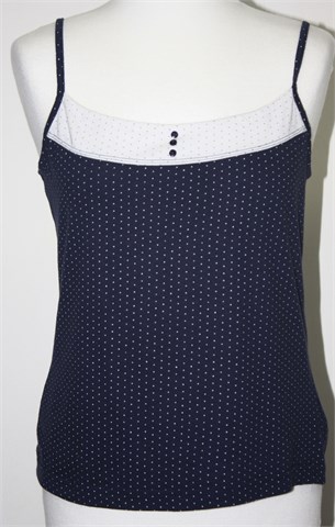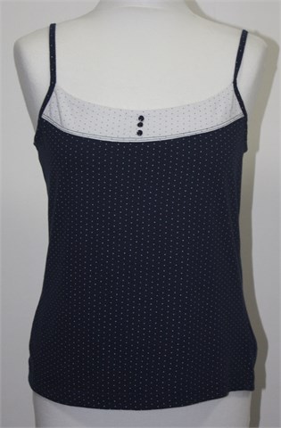 F&F topić tamno plave boje sa bijelim točkicama. Fiksne naramenice, detalji oko dekoltea. Mekan i rastezljiv.