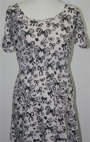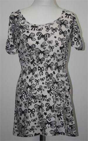 F&F duža majica/tunika svijetlo roze boje sa crnim printom mašnica. Nabori na rukavićima. U struku gumica, prema dolje tunika se lagano širi. Mekan i rastezljiv pamuk.