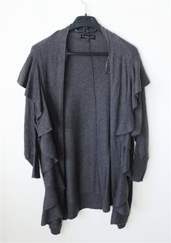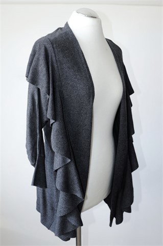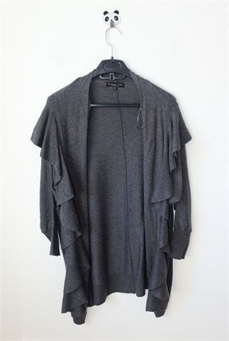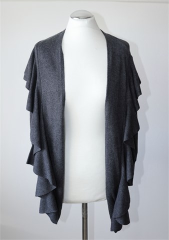 Knitwear by F&F vesta prošarano tamno sive boje. Bez kopčanja, volančići sa prednje strane. Mekana i rastezljiva.