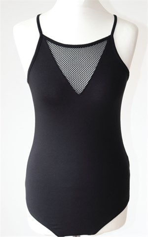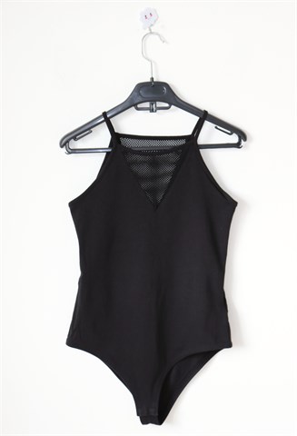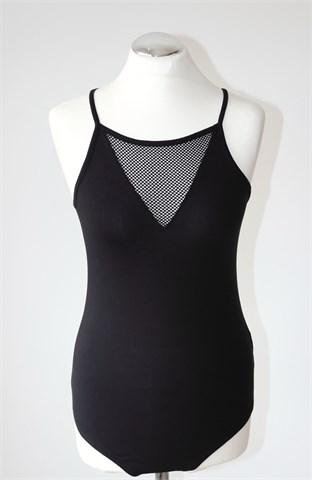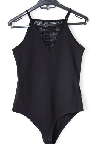 FB Sister (Fishbone) majica bez rukava/body crne boje. Kopčanje sa drukerima između nogu, tanke naramenice. Mrežasti materijal u gornjem dijelu (sa obje strane). Mekana i rastezljiva.