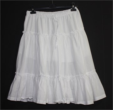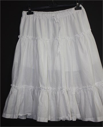 Famous Design ljetna suknja sa volanima, bijele boje. Gumica i vezica u struku, djelomično podstavljena. Lagana i prozračna.