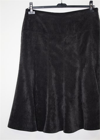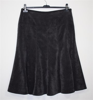 Farbe suknja tamno sive boje od materijala koji izgleda kao plišasti samt. Djelomično podstavljena, bočni cif. Mekan i topli materijal.