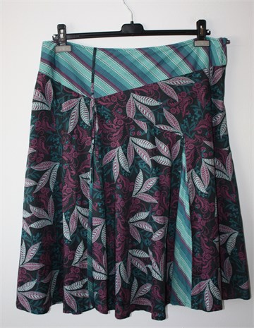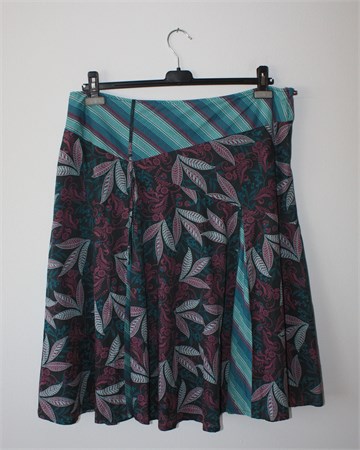 Fat Face suknja sa šarenim printom (boje i uzorak printa kao na slikama), kombinacija prugastog materijala i materijala sa cvjetnim printom. Bočni cif i gumbić, podstavljena pamučnom podstavom.