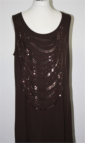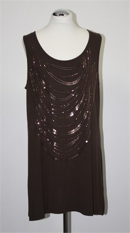 Fiorella Rubino dugačka majica/tunika/kratka haljina bez rukava, tamnije smeđe boje, aplikacije sa prednje strane. Rastezljiv materijal.
