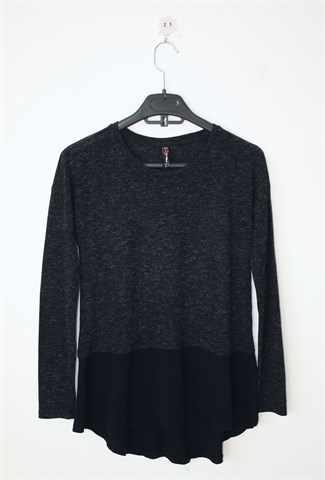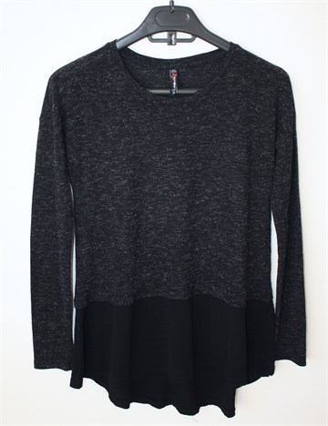 Fishbone Sister majica, gornji dio crne boje sa upletenim bijelim nitima (djeluje prošarano), donji dio u izgledu krepa, crne boje. Tanja i mekana, rastezljiva. Duža sa stražnje strane (vidjeti mjere, donji dio oblo rezan).