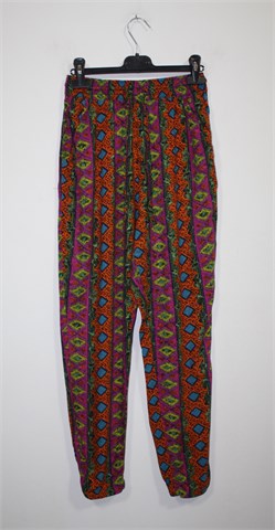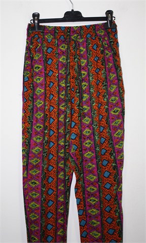 Fishbone Sister lagane hlače sa šarenim uzorkom (boje i uzorci kao na slici). Bočni džepovi, guma i vezice u struku. Blago stegnute gumicom sa stražnje strane dna nogavica. Lagane i prozračne, dublji model (vidjeti mjere).