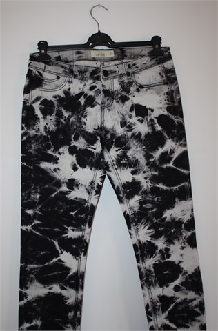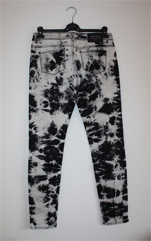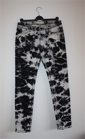 Fishbone traper hlače prošarano sive boje (tye dye - boje i uzorak kao na slici). Prednji cif i kopčanje, pasica za remen. Prednji i stražnji klasični džepovi. Skinny model, blago rastezljive.
