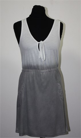 Fishbone sister tunika/kratka haljinica bez rukava, kombinacija bijele i sive boje (kao na slikama). Gumica u struku, bočni džepići. Lagana i rastezljiva.